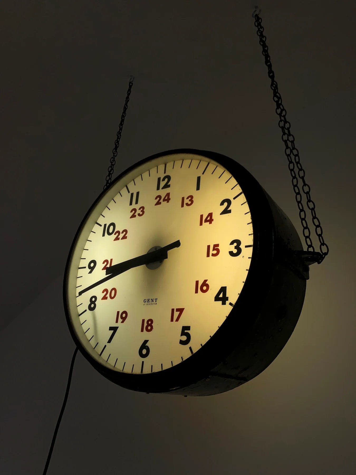 Clock greets me with a malicious stare, its