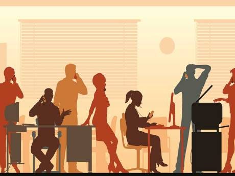 “the dystopian thing here isn't the blinders - it's open-plan offices. As you surely know by now, they're demotivating, distracting and linked to higher stress and blood pressure”.