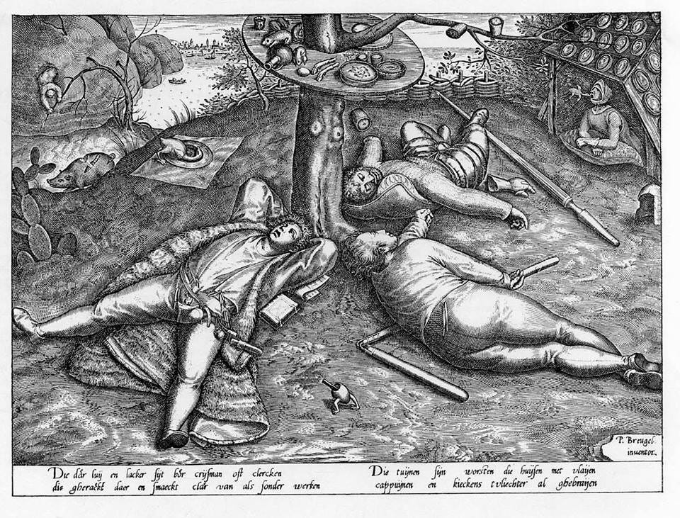 PIETER Bruegel the Elder's depiction of the medieval paradise, The Land of Cockaigne (1567), features a clerk, a peasant and a warrior and represents three ‘functions’ of Indo-European society. Set around a tree, which acts as the central hub, the figures in the engraving represent the spokes of a wheel, although the fourth position - that of the noble - has been taken by a roasted fowl.