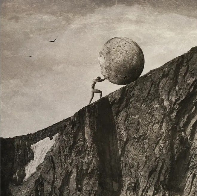 I WONDER if there is someone in a parallel universe who, caught in some endless cycle of repetition, borrows Albert Camus' The Myth of Sisyphus from his local library, takes it home, reads it and returns it the following week? Not to mention borrows it again, takes it home, re-reads it and returns it the following week; borrows it again, takes it home, re-re-reads it and returns it the following week; borrows it again, takes it home, re-re-re-reads it and returns it the following week; borrows it again, takes it home, re-re-re-re-reads it and returns it the following week, etc. etc. ad infinitum.